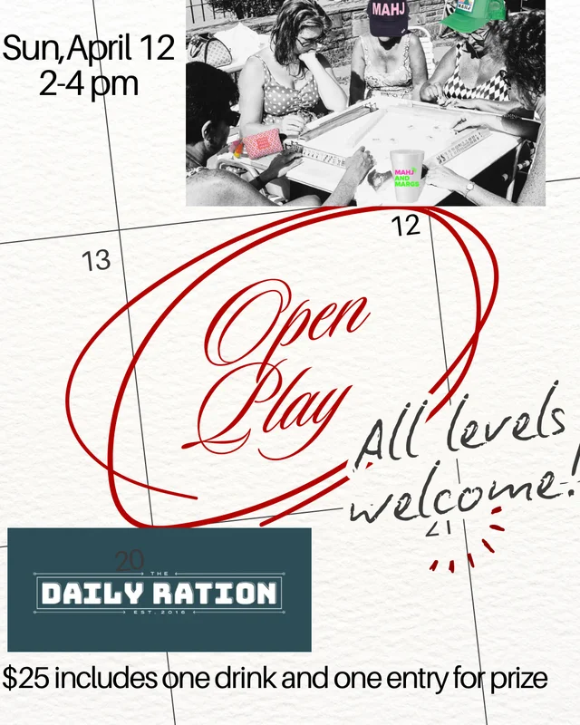 Come out and play mahjong with new and old friends! All levels welcome but no instruction will be given for new players. Bring your mahjong sets or play with ours. $25 includes a drink, lite bites, and ticket for fun prizes.